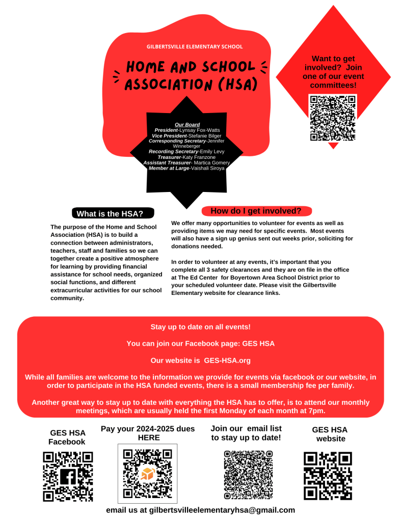 Join our email list to stay up to date on all events and opportunities that the HSA will be offering this year! HSA email list link